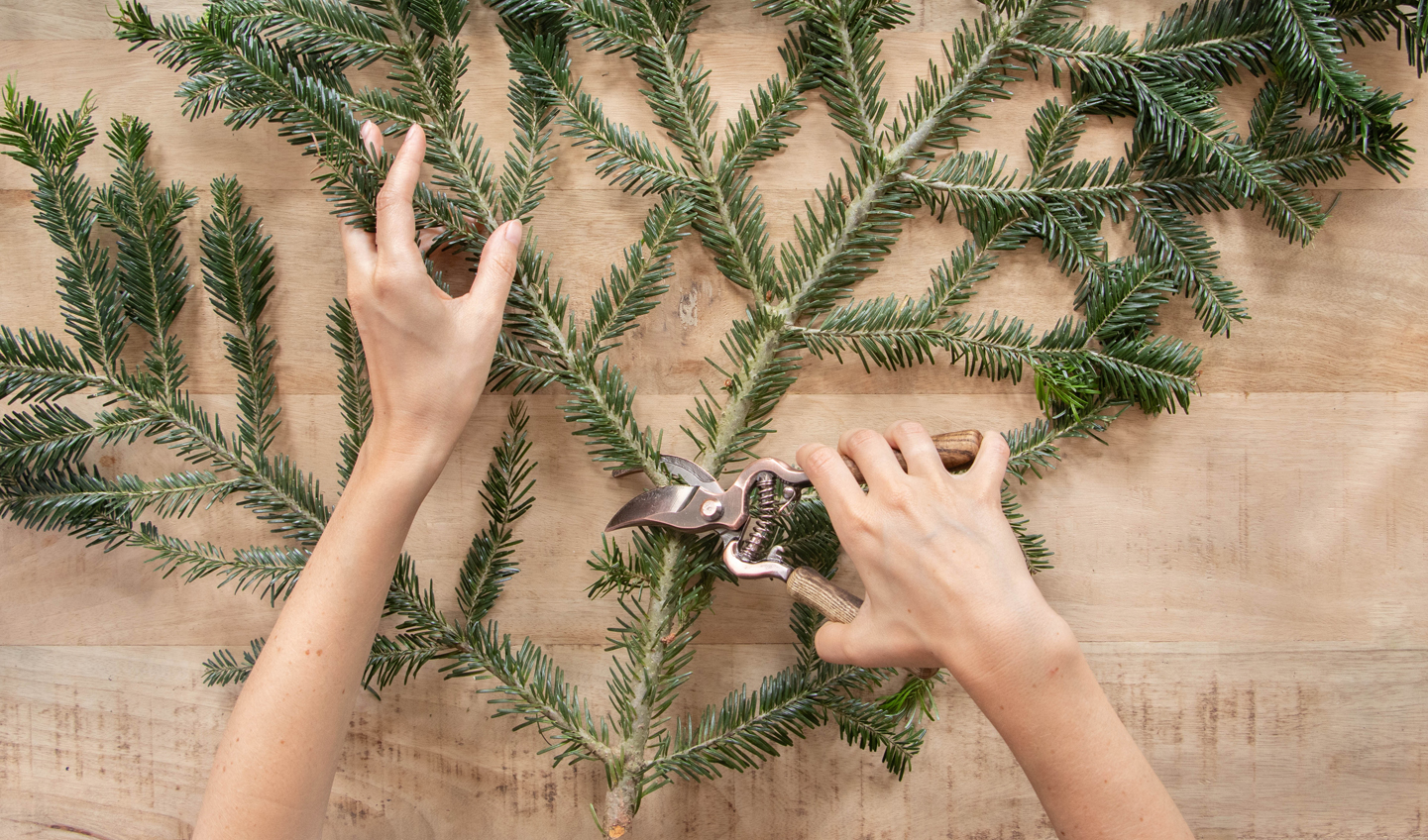 2. Coupez des branches de sapin pour fabriquer une base aux dimensions adaptées à votre table.