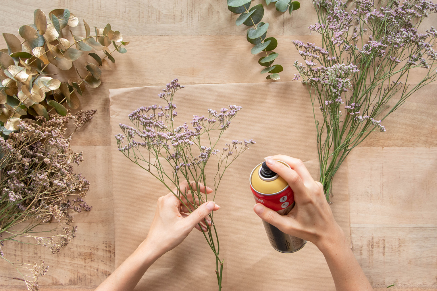 1. Bombez les éléments que vous voulez colorer, de façon homogène, en prenant soin d’aérer la pièce.