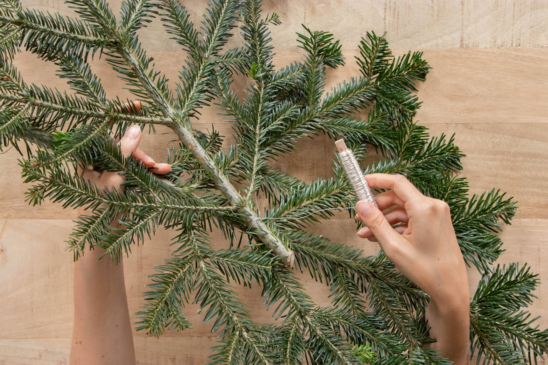 3. Liez ces branches entre elles à l’aide du fil de fer.