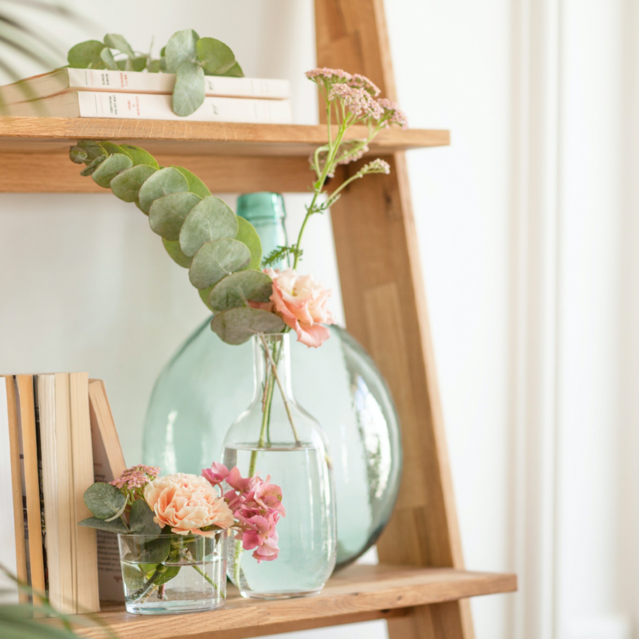 Pas de grand vase pour votre bouquet XXL ? Dispatchez-le dans des petits contenants aux tailles et aux formes variées. Une façon de réinventer cette composition florale.