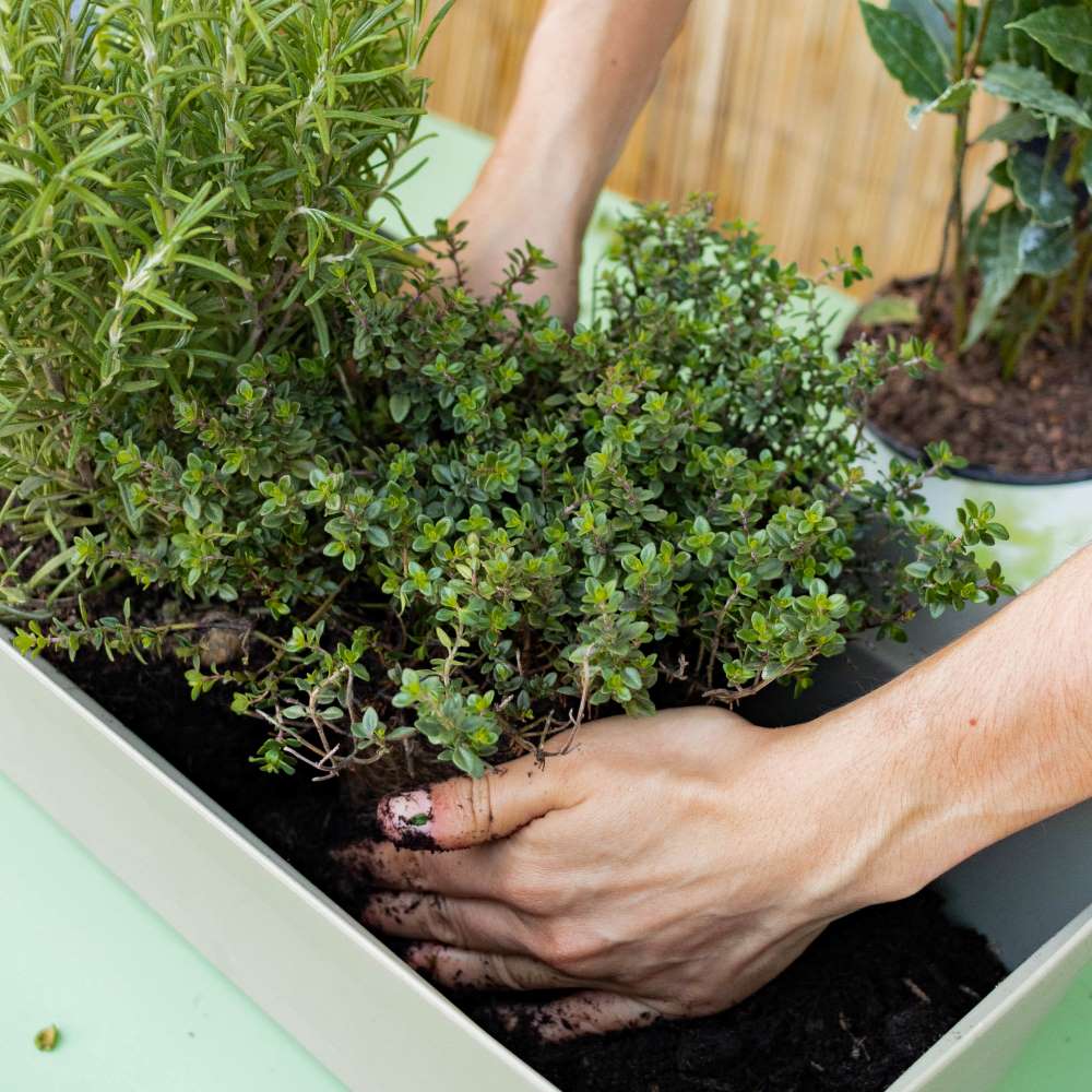 Les plantes aromatiques pourront être plantées tout au long de l’année en intérieur. Pour une culture en extérieur, préférez l’arrivée des beaux jours vers la fin du mois d’avril ou le début du mois de mai pour les exposer dans votre jardin, sur votre terrasse ou sur votre balcon. Vous pourrez opter pour un terreau universel ou dédié aux plantes d'extérieur ou aromatiques. Prenez soin de sélectionner des plantes aux besoins similaires au sein d’une composition en jardinière.