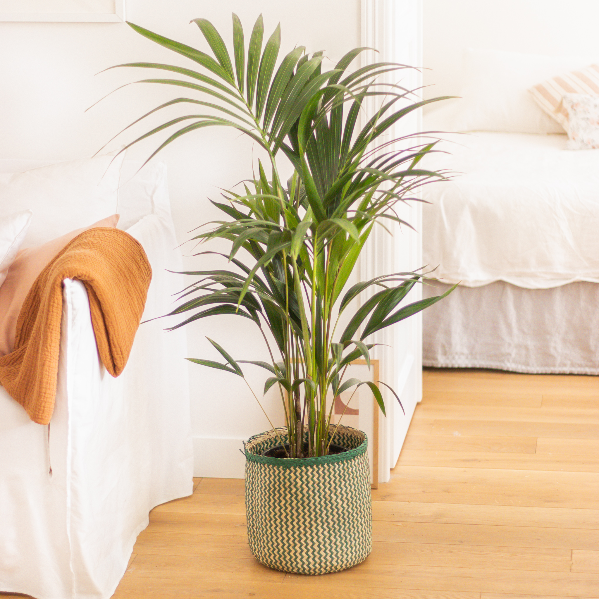 Rehaussez la décoration de votre pièce à vivre avec un Kentia ! Ce palmier d’intérieur est idéal pour apporter une ambiance de jungle urbaine. Son feuillage exotique donne des airs de vacances. De plus, son allure gracieuse ainsi qu’élancée offre du caractère à n’importe quel environnement et plus particulièrement à un salon lumineux ! Volumineux et luxuriant, dédiez une place de choix à votre Kentia, à proximité d’une baie vitrée tamisée par exemple.