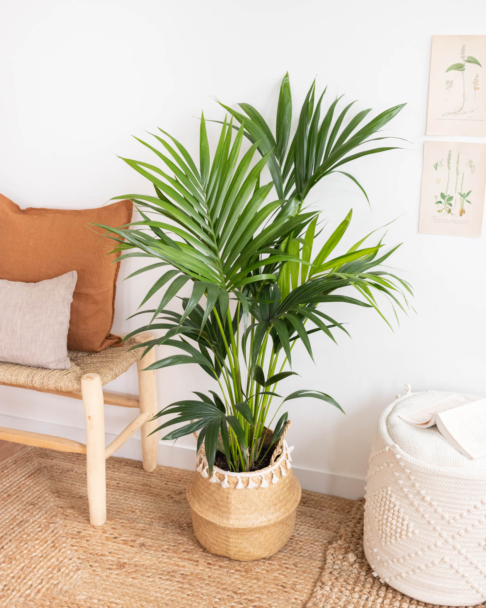 - Le Kentia est l’un des rares palmiers à tolérer l’ombre. Placez-le dans une pièce lumineuse ou légèrement ombragée. Cependant, veillez à ne pas l’installer proche d’un chauffage ou d’un ventilateur. Arrosez-le 1 à 2 fois par semaine en été et au printemps. Réduisez la fréquence en hiver.