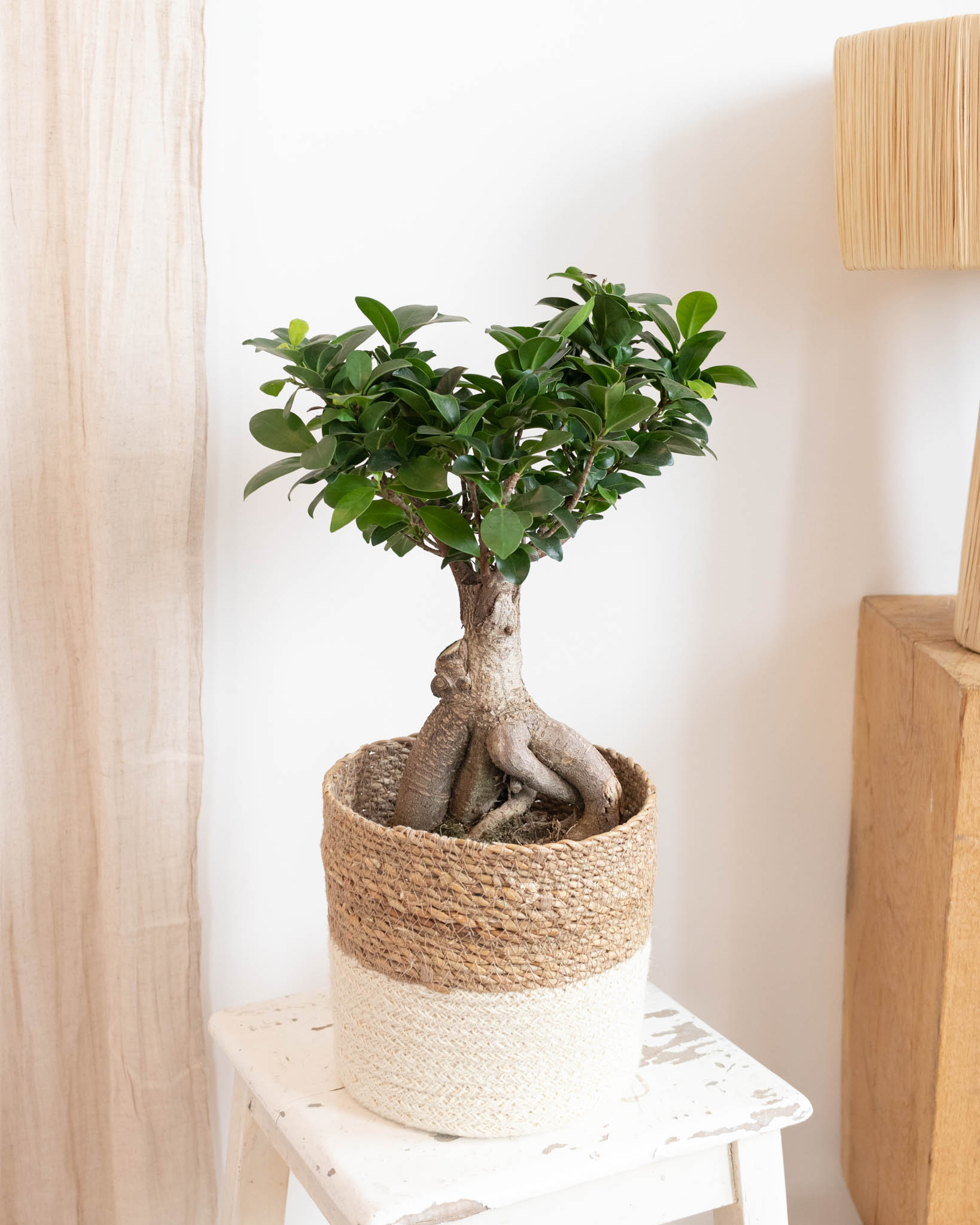 Aussi appelé "Arbre de l'intendance", “Laurier d'Inde" ou encore “Ficus bonsaï”, il fait partie de la grande famille botanique des Moracées. Cultivé en tant que plante d’intérieur en régions tempérées, on le considère généralement comme le bonsaï du débutant ; et pour cause, il est très facile d’entretien !